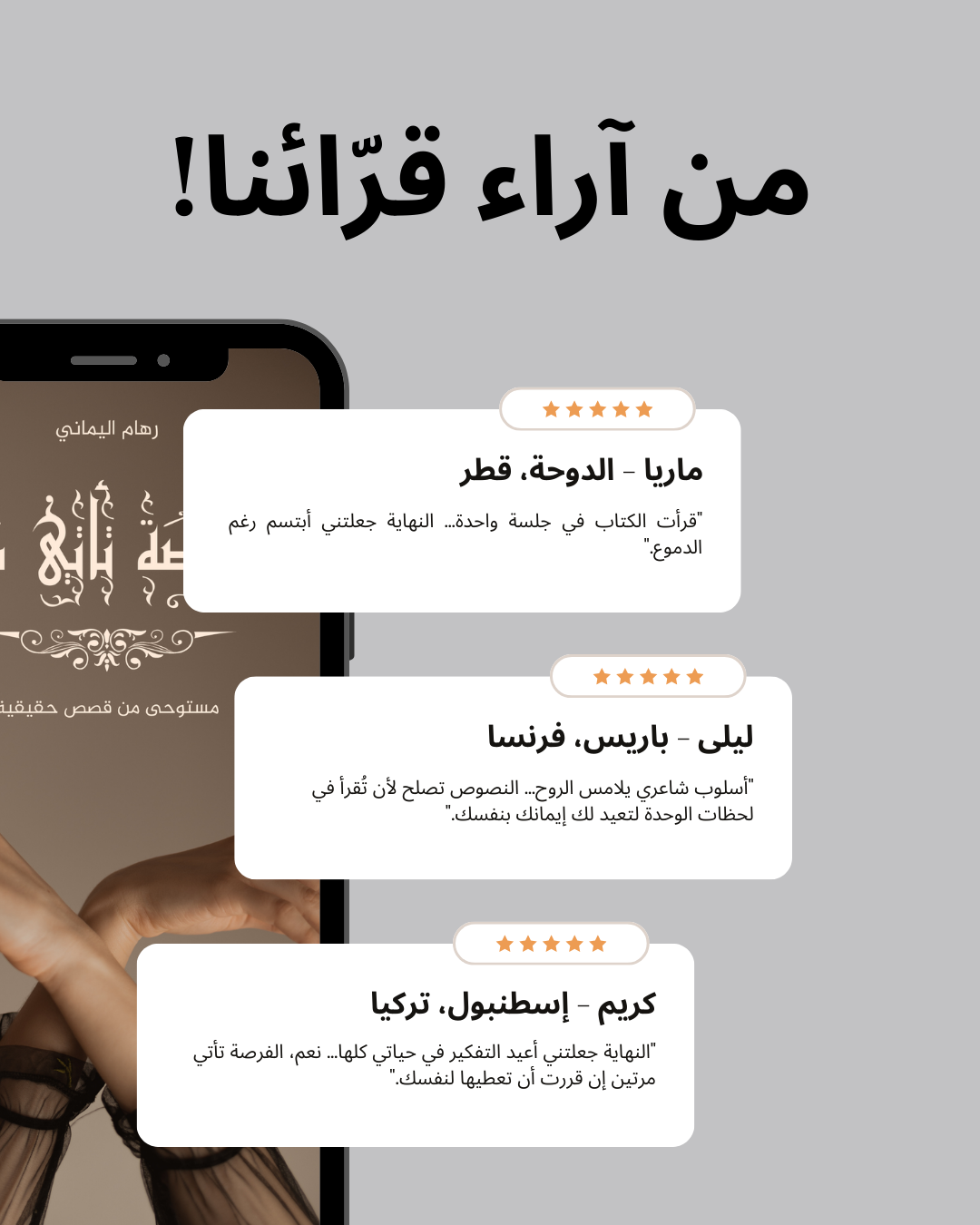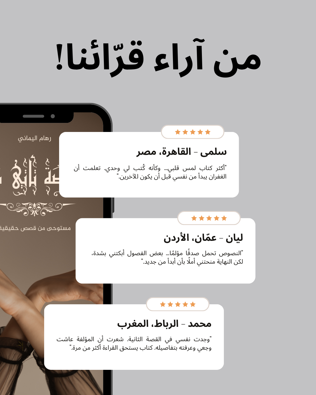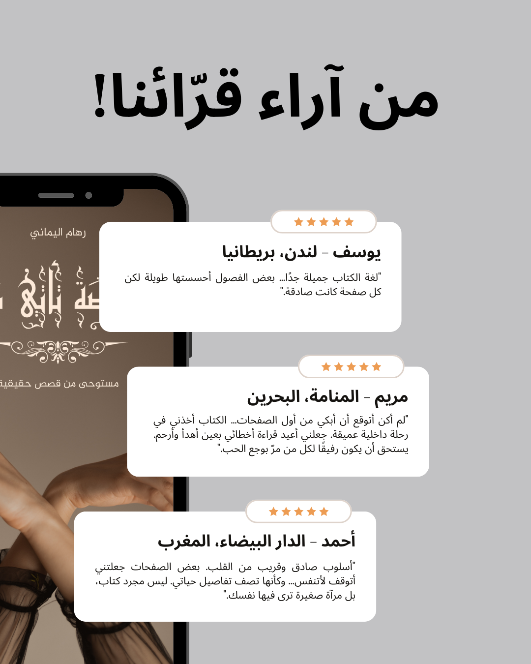 من خلال ثلاث قصص واقعية مؤلمة، ورسالة مفتوحة لكل قارئ ليكتب قصته الخاصة، يأخذنا هذا الكتاب في رحلة تأملية عن معنى أن تمنح نفسك فرصتك الثانية.